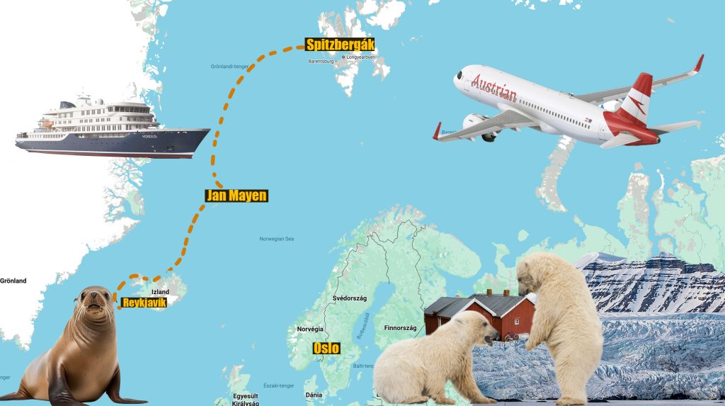Mit szólnál egy 21 napos expedíciós hajóúthoz, amely során Izlandról indulva 15 éjszakás hajúton megismerheted a Föld legészakabb érintetlen részét? Az utazás során egy éjszakát töltesz a jegesmedvéiről híres Spitzbergákon és Oslóban is. Kis szerencsével törpe és finn bálnát, sarki rókát, rénszarvast, jegesmedvéd, fókát és sehol máshol nem található madárfajokat is láthatsz.