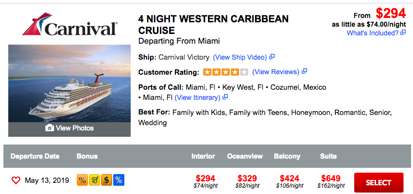 Óceánjáró, 4 Nights Caribbean Western Cruise