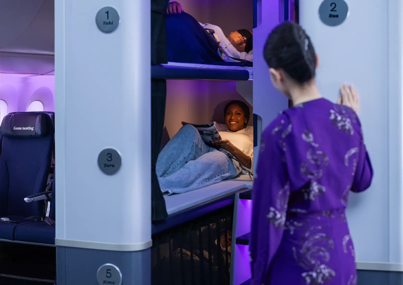 Az új fekvőhelyeket az Boeing 787-9 Dreamliner gépeken alakítják ki, ahol egy-egy egységben 6, egymás fölött elhelyezett fekvőhely kap helyet, gyakorlatilag egy emeletes ágyakból álló mini hálófülkeként.