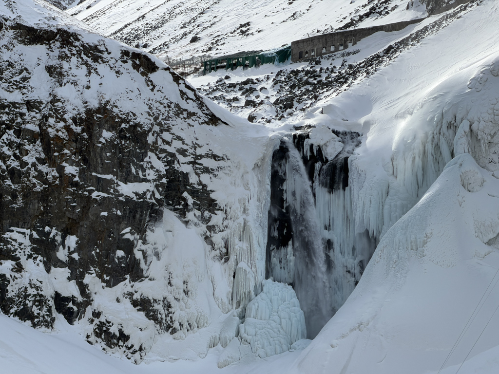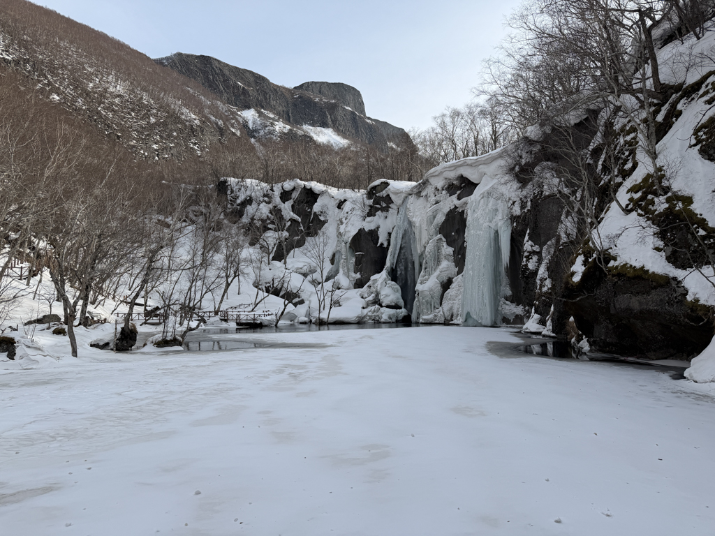 Nem messze a krátertótól található a Changbai-vízesés, amely a hegy egyik legismertebb természeti látványossága. Márciusban a környék egészen különleges látványt nyújtott: a sziklákat vastag jég borította, miközben a vízesés egy része továbbra is zúdult lefelé.