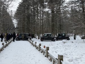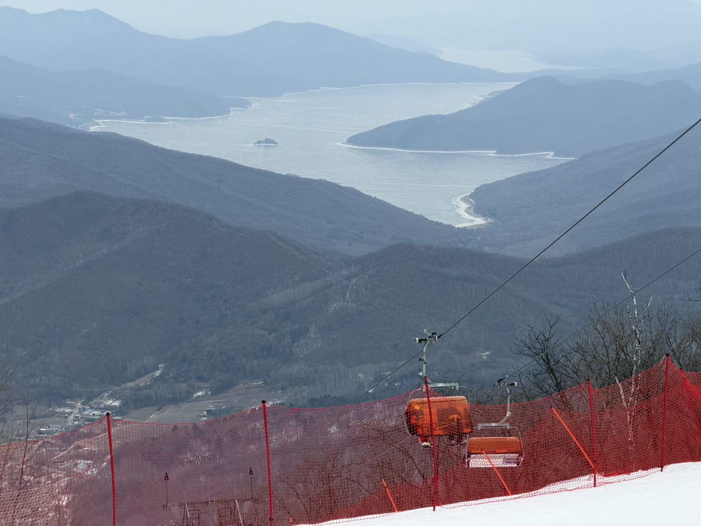 Jilin városából néhány órás utazással már a Changbai-hegység havas tájai között találtuk magunkat. Március elején a környéken még javában tartott a téli szezon, és a hegyvidéken több modern síközpont is működik, amelyek miatt sokan kifejezetten a téli sportok kedvéért érkeznek ide.