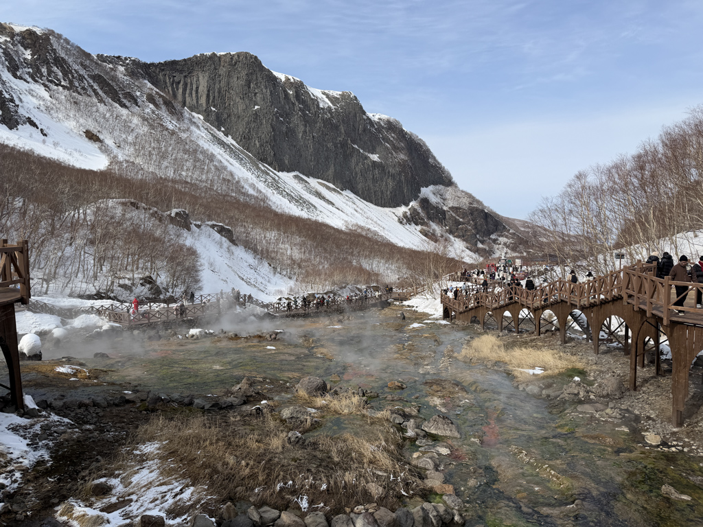 A vulkanikus eredet miatt a Changbai-hegy környékén több termálforrás is található, amelyekből folyamatosan gőz száll fel a hideg hegyi levegőben.
